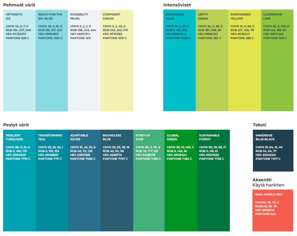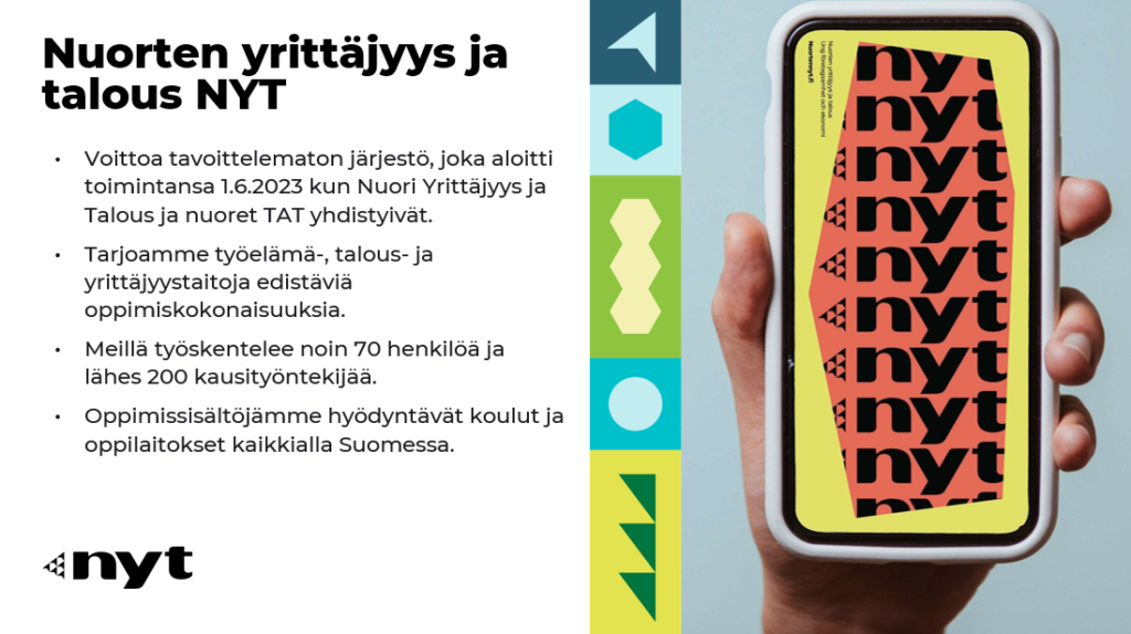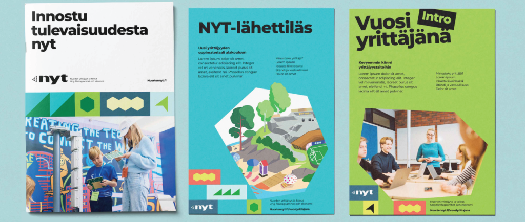 Nuorten yrittäjyys ja talous NYTin brändiohjeistosta löydät tiedot ja ladattavat materiaalit logon ja värien käyttöön, ohjeita typografiasta, kuvastosta ja graafisista elementeistä. Pelkästään verkkosivuja koskevan brändikirjaston löydät Figmasta. Jos tarvitset lisäneuvoja, ota yhteys Nuorten NYTin viestintätiimiin.
