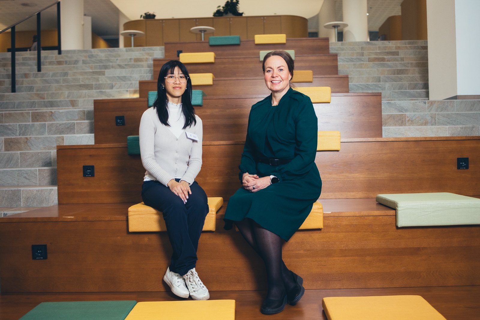 Turun normaalikoulun opiskelija Julia Pham tutustui Job Shadow -päivässä vakuutusalaan yhdessä Fennian toimitusjohtaja Hanna Hartikaisen kanssa.